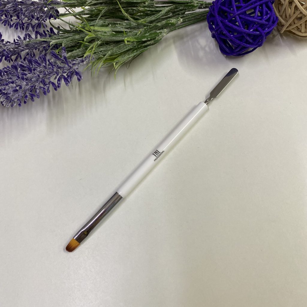 Инструмент представляет собой двухстороннюю кисть-шпатель для работы с акрил-гелем.Данная кисть для акрил-геля намного облегчает работу мастера – не нужно иметь два отдельных инструмента для наращивания ногтей.