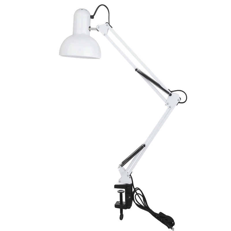 Удобная лампа с креплением к поверхности стола создаст комфортное освещение в процессе работы. Работает от электросети и включается нажатием на кнопку. Угол освещения можно легко менять благодаря подвижному плафону (вращается вокруг своей оси и по вертикали) и регулируемому колену. Рекомендуется использовать светодиодную лампочку (в комплект не входит).