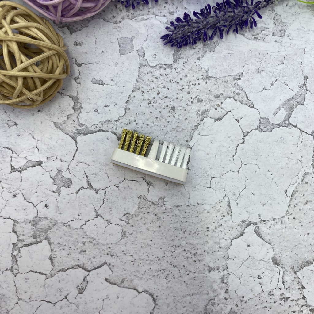 Щеточка Nail Beauty Series двойная для чистки насадок от маникюрного фрезера, настольная, на клеевой основе.