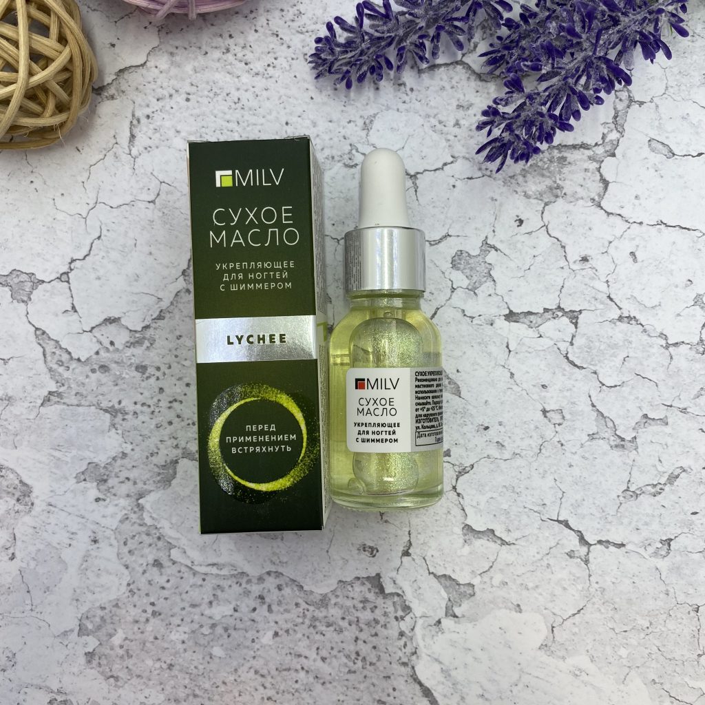 Сухое укрепляющее масло для ногтей с шиммером «LYCHEE». 15 мл. Milv