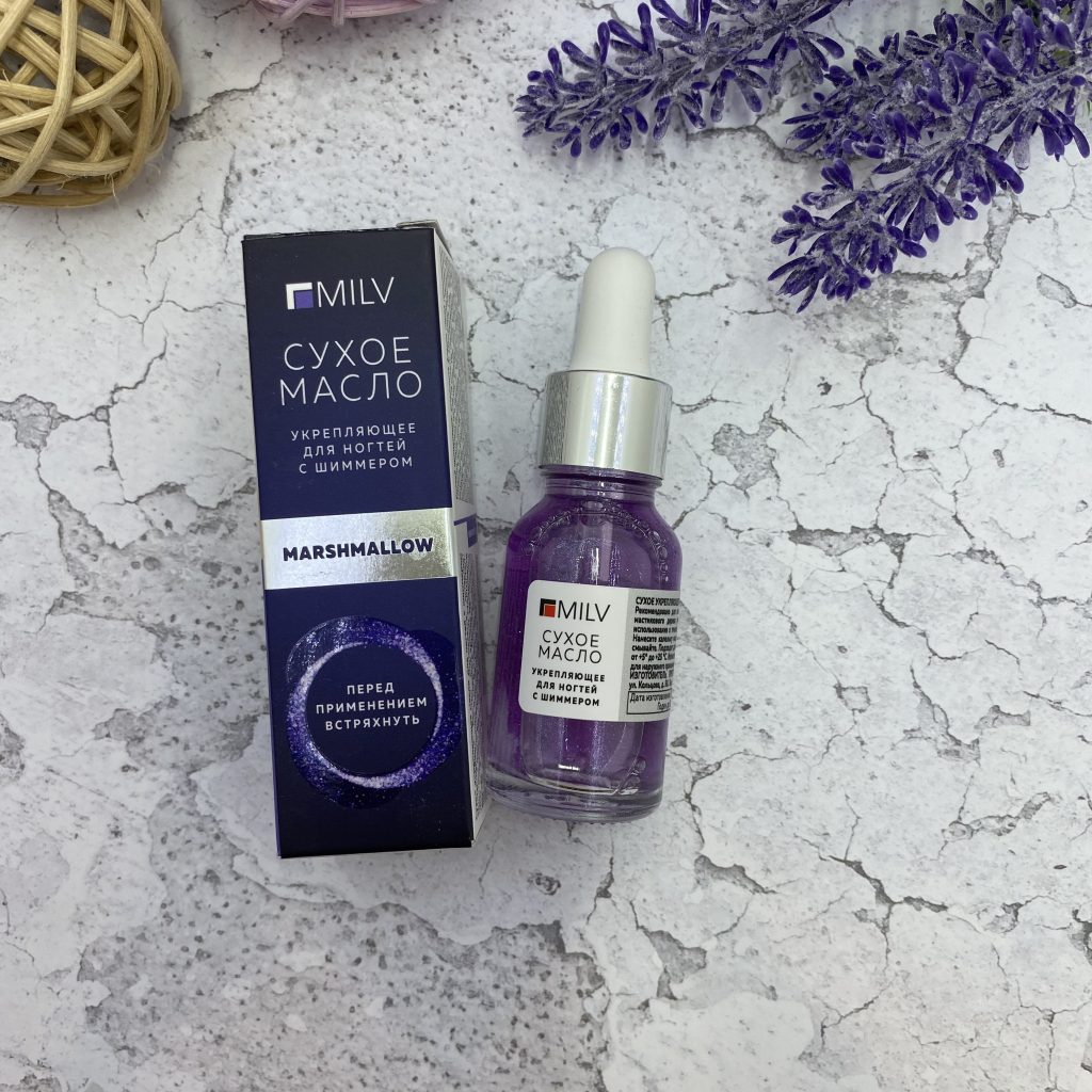 Сухое укрепляющее масло для ногтей с шиммером «MARSHMALLOW». 15 мл. Milv